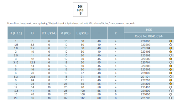 Frez ćwierćokrągły wklęsły DIN 6518B R10 HSS /NFRk/
