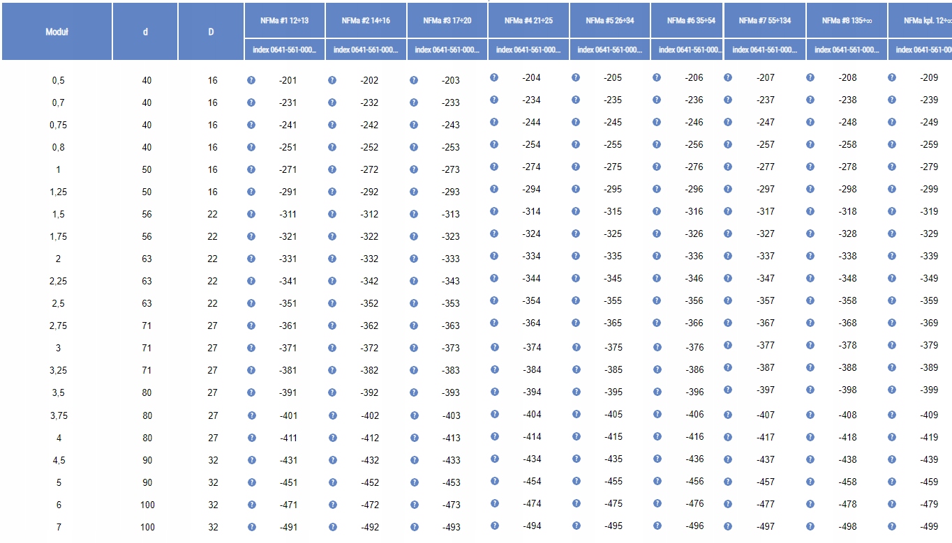 - Liczba zębów koła obrabianego: 26-34