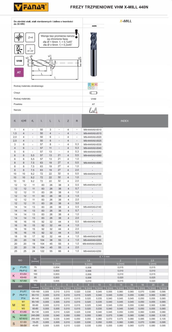 X-MILL 440N Frezy węglikowe VHM z powłoką AT ogólnego przeznaczenia do obróbki materiałów o twardości do 35 HRC.