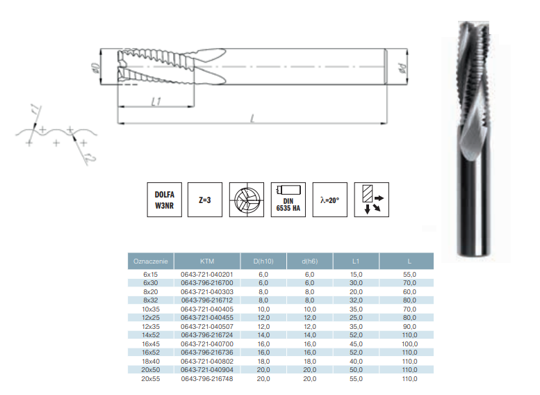 - Typ produktu: frez trzpieniowy walcowo-czołowy