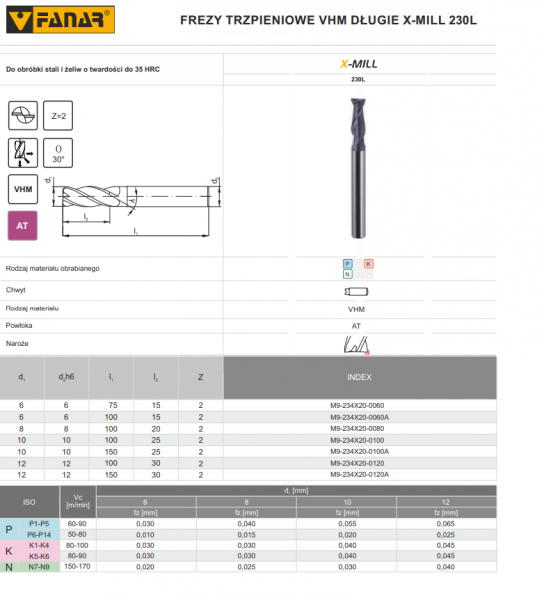 FREZ TRZPIENIOWY X-MILL 230L 6x6x15x100 2 OSTRZOWY VHM AT DŁUGI FANAR