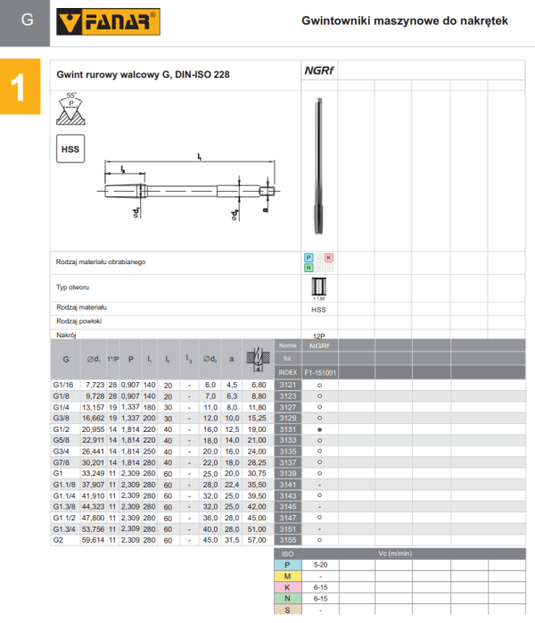 GWINTOWNIK MASZYNOWY DO NAKRĘTEK NGRf G 3/8 ISO2 HSS FANAR