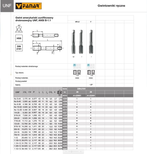 GWINTOWNIK RĘCZNY AMERYKAŃSKI ZUNIFIKOWANY DROBNOZWOJNY UNF DIN-2181/2 No12-28 2B HSS KPL FANAR
