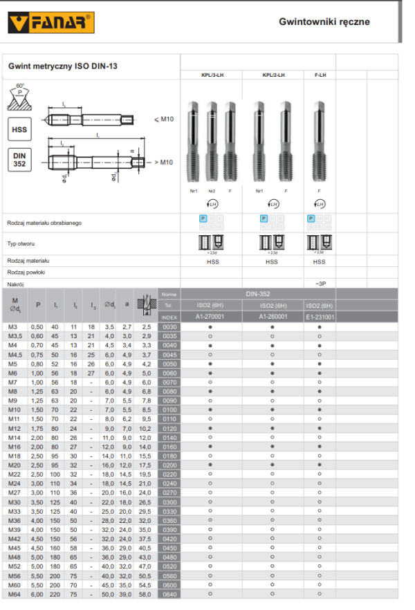 KOMPLET GWINTOWNIKÓW DIN-352/3 LH ISO2(6H) HSS