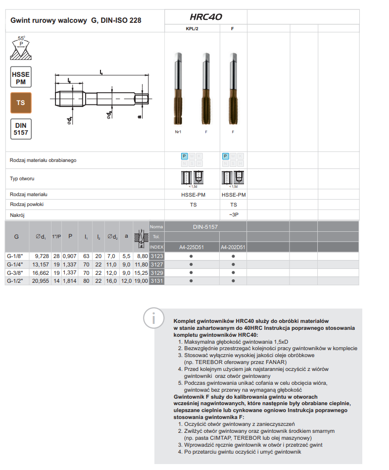 GWINTOWNIK RĘCZNY DIN-5157/2-P G3/8 HSSE-PM HRC40 S1 /FANAR/