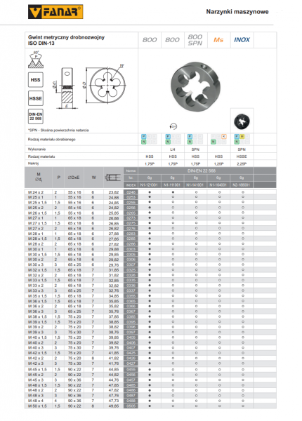 NARZYNKA M50x1,5 DIN-22568 6g HSS 800 (FANAR)