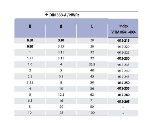 Nawiertak VHM wg normy DIN 333-A NWRc, przeznaczony do wykonywania wstępnych nakiełków zwykłych