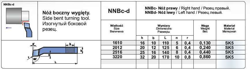NÓŻ TOKARSKI NNBC 1610 SK5 ISO3 BOCZNY WYGIĘTY /TECH/