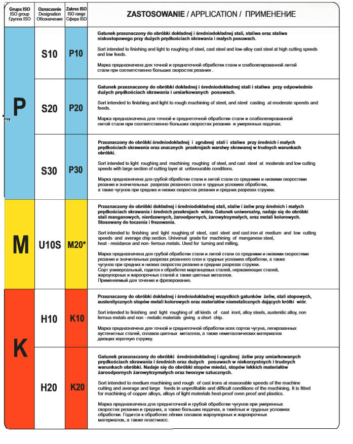 Produkt jest dostępny w różnych rodzajach płytek, w tym P10, P20, P30, K10, K20 oraz M20, co pozwala na dostosowanie narzędzia do indywidualnych potrzeb użytkownika. Oto pełna lista płytek: