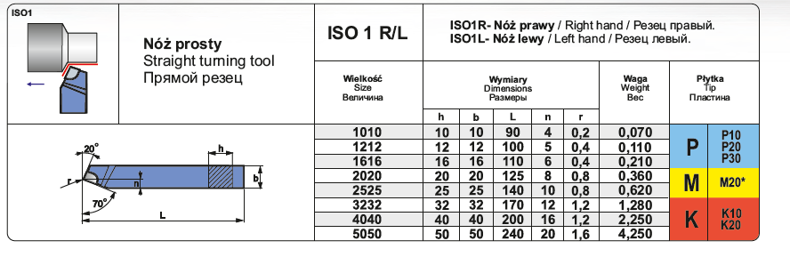 NÓŻ TOKARSKI NNZa 2020 P10, P20, P30, K10, K20, M20 ISO1R PROSTY /PAFANA/