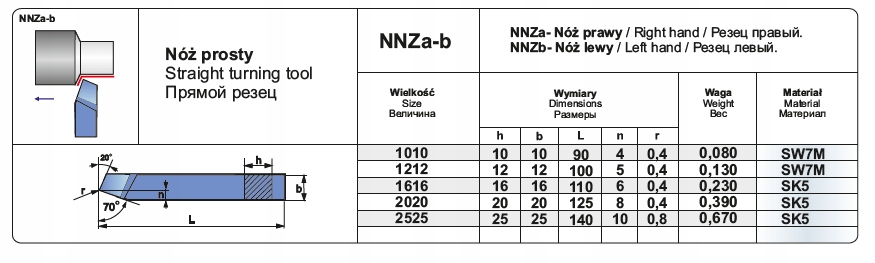 NÓŻ TOKARSKI NNZa 1212 P10, P20, P30, K10, K20, M20 ISO1R PROSTY /PAFANA/