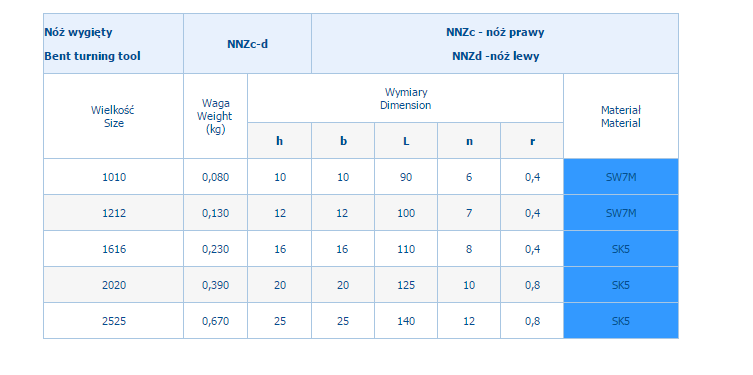 NÓŻ TOKARSKI NNZc WYGIĘTY ZE STALI SW7W SŁUŻY DO OBRÓBKI DOKŁADNEJ I ŚREDNIODOKŁADNEJ STALI,