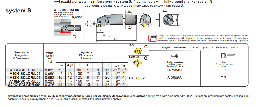 NÓŻ TOKARSKI SKŁADANY A12KSCLCR06 PRAWY Z CHWYTEM SZLIFOWANYM I CHŁODZENIEM SYSTEM S