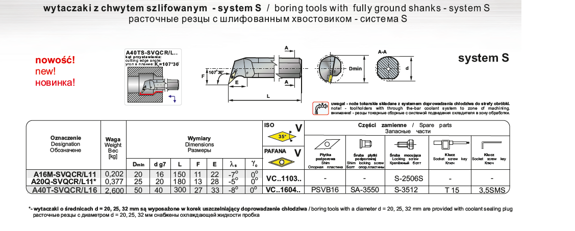 NÓŻ TOKARSKI SKŁADANY A20Q SVQCR 11 Z CHWYTEM SZLIF. I CHŁODZENIEM PAFANA