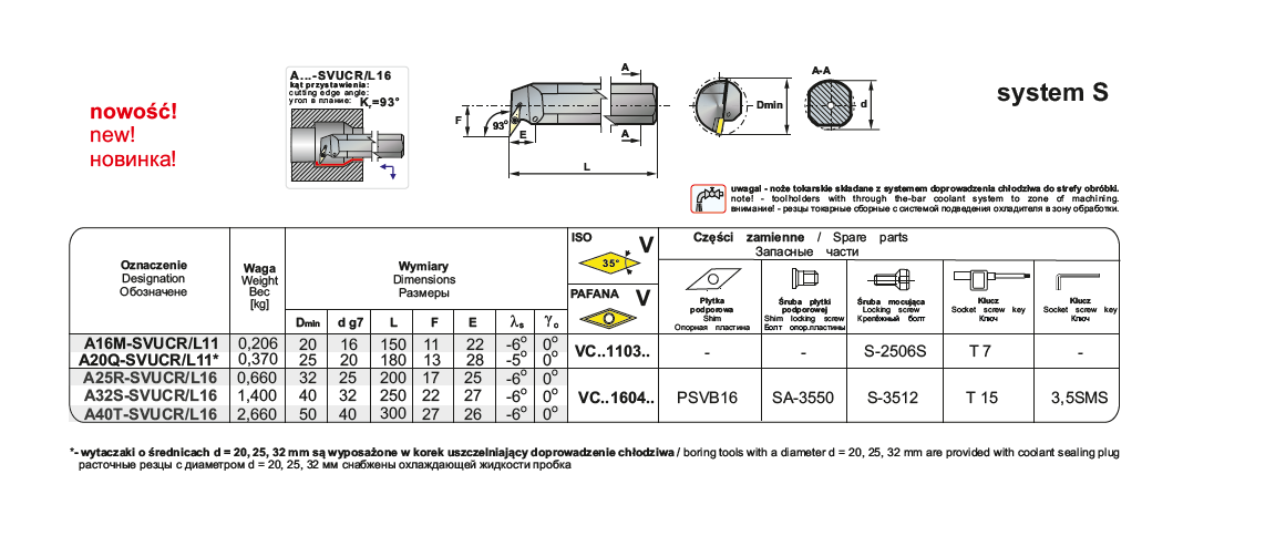 NÓŻ TOKARSKI SKŁADANY A20Q-SVUCR11 PRAWY SYSTEM S