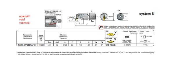 NÓŻ TOKARSKI  SKŁADANY A32S SVQBR16  PRAWY   SYSTEM S