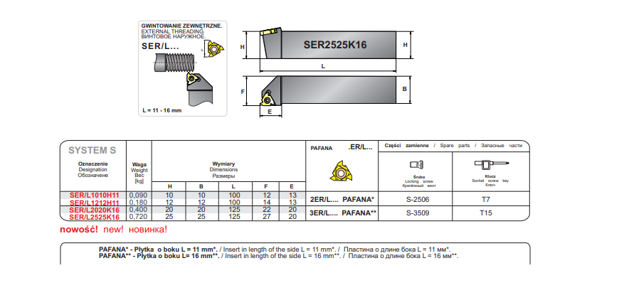 NÓŻ TOKARSKI SKŁADANY DO GWINTÓW SEL 3232 P27 PAFANA