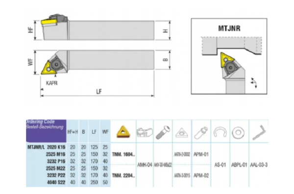 Nóż tokarski składany MTJNR 4040 S22 AKKO Prawy