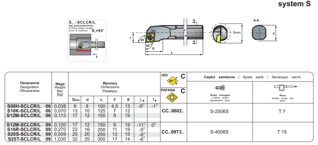 NÓŻ TOKARSKI SKŁADANY S10K SCLCR06 PRAWY SYSTEM S