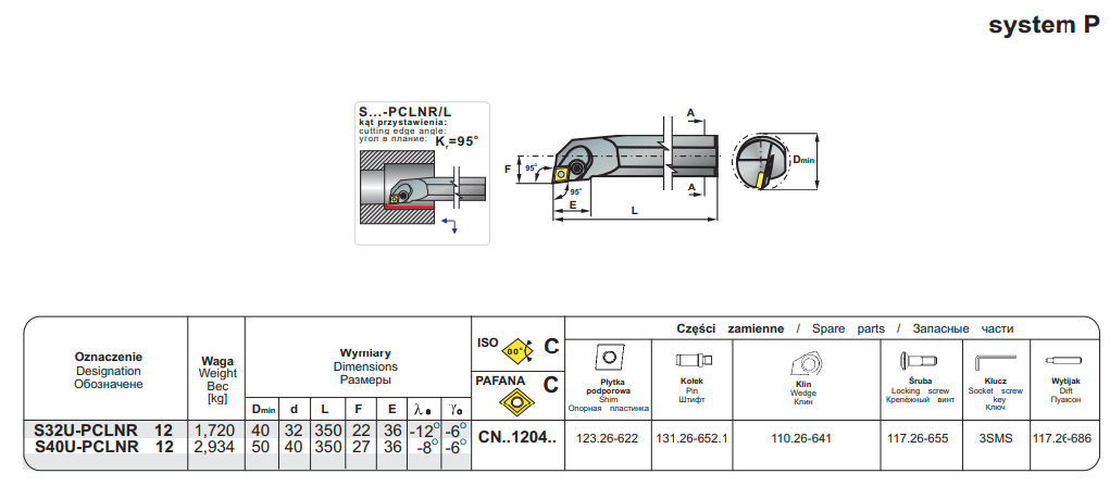 NÓŻ TOKARSKI S40U PCLNR12 PRAWY SYSTEM P