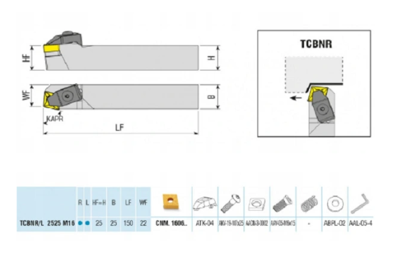 Nóż tokarski składany prawy TCBNR 2525 M16 AKKO