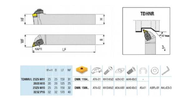Nóż tokarski składany TDHNR 3232 P15 AKKO Prawy