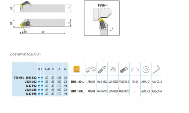 Nóż tokarski składany TSSNR 2525 M12 AKKO Prawy