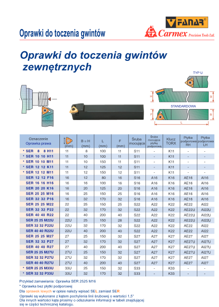 OPRAWKA DO TOCZENIA GWINTÓW ZEWNĘTRZNYCH PRAWA SER 1616 H16 CARMEX /FANAR