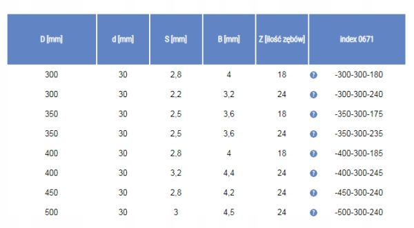 Rodzaj zębów GM (zęby płaskie) wykonane są z węglików spiekanych.
