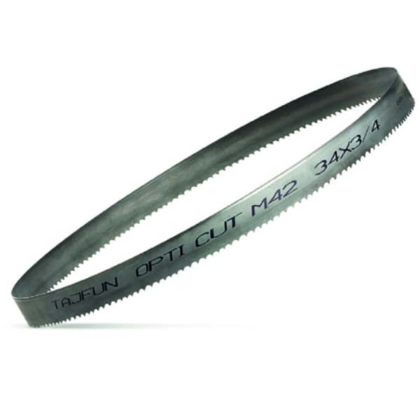 - Piła wykonana jest ze stali szybkotnącej M42 o 8% zawartości kobaltu połączonej wiązką elektronów z taśmą nośną ze stali sprężynowej