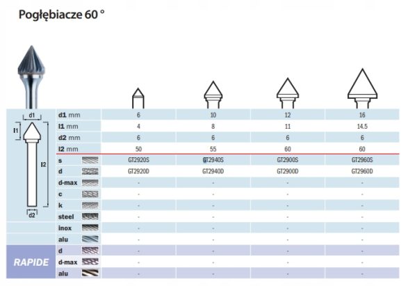 Pilniki obrotowe z węglika spiekanego – Pogłębiacze 60 stopni