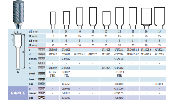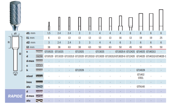 Pilniki obrotowe z węglika spiekanego – walcowe z ostrzami na czole TYP B