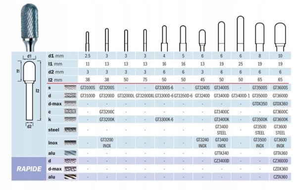 Pilniki obrotowe z węglika spiekanego – walcowe TYP C ZAOKRĄGLONE
