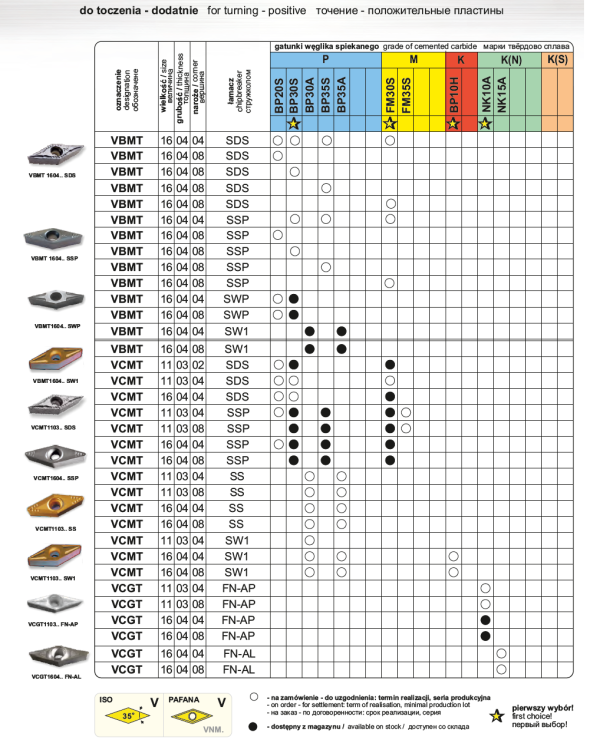 Płytki dodatnie do toczenia STALI- kształt płytki V