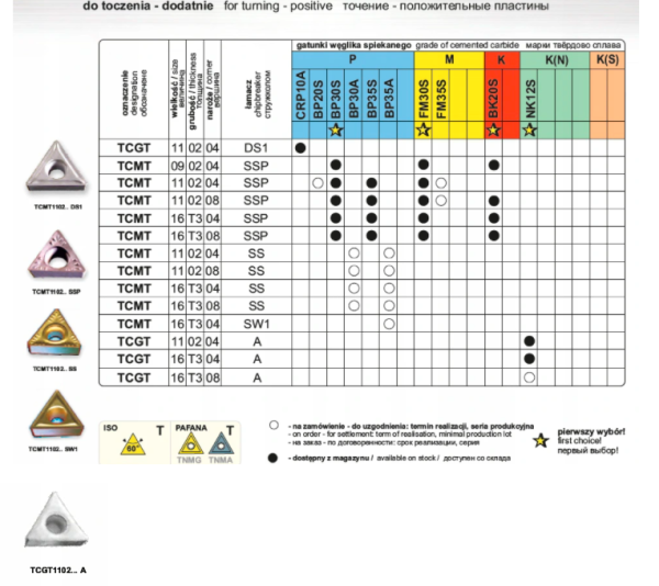 Płytki dodatnie do toczenia STOPÓW LEKKICH- kształt płytki T