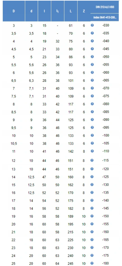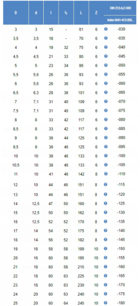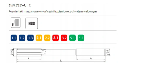 ROZWIERTAKI MASZYNOWE WYKAŃCZAKI DIN 212- A  HSS (NRTd)  TRZPIENIOWE Z CHWYTEM WALCOWYM I PROSTYMI ROWKAMI WIÓROWYMI