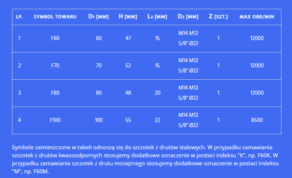 Zastosowanie: szczotki splatane z przeznaczeniem do ciężkich prac oczyszczających, gdzie możliwe jest zastosowanie agresywnie czyszczącego drutu.