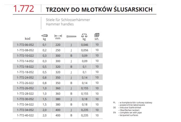 TRZONEK DO MŁOTKA 0,5 KG 320mm BUKOWY KUŹNIA