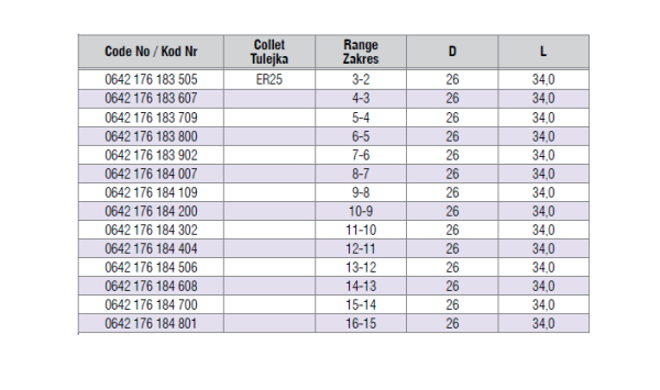 tulejka zaciskowa ER25