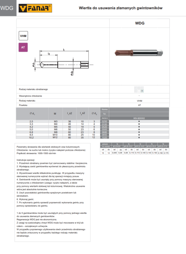 Oferujemy wiertło do usuwania złamanych gwintowników M4 WDG-VHM-A2-3.30 od renomowanego producenta FANAR. To narzędzie zostało zaprojektowane z myślą o efektywnym usuwaniu uszkodzonych gwintowników, co czyni je niezwykle przydatnym w każdym warsztacie oraz w przemyśle. Dzięki wysokiej jakości materiałów oraz precyzyjnemu wykonaniu, każdy egzemplarz wiertła gwarantuje długotrwałe użytkowanie oraz niezawodność w trudnych warunkach.