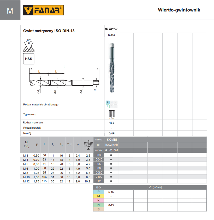 WIERTŁO-GWINTOWNIK KOMBI M3 -6H HSS FANAR